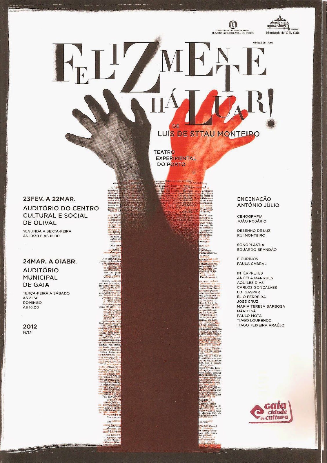 Direcção e encenação: Cândido Ferreira, João Jorge Meirim e Nicolas Brites. Com: António Figueiredo Marques, Catarina Carvalho, Eduarda Manso, Ethel Feldman, Geny Neto, João Raimundo, João Jorge Meirim, Mónica Paulo, Sara Teles e Vanda Guerreiro.