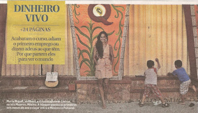 Ia vendo algumas imagens da Maria Miguel na América latina, algumas a lembrarem a Frida Kahlo, por causa das roupas que vestia, mas não sabia da longa digressão que ela fez nos últimos seis meses. De quando em vez, escrevíamo-nos, por causa do seu sítio Arqueologista de Lisboa, ela que fora minha aluna há alguns anos. Agora percebi. Lê-se no começo do artigo de Ana Margarida Pinheiro: "João Vasconcelos, presidente da Startup Lisboa, convive diariamente com jovens e sabe que estas experiências estão a crescer depois de anos de vontade e de falta de capacidade económica. «No meu tempo havia o inter-rail, que ainda existe, mas era uma coisa restrita. Agora é tudo mais fácil, com as companhias low-cost». A novidade, diz, é apenas nossa: «Muita gente de outros países está habituada a passar temporadas fora. Os norte-americanos e os brasileiros há muito que vêm passar um ano à Europa. Os portugueses estão agora a despertar para essa realidade», afirma. E há uma vantagem grande face ao seu tempo: estas opções, que podem acarretar a demissão ou uma licença sem vencimento, são bem vistas pelas empresas. «Os melhores empreendedores que temos na Startup Lisboa têm todos uma coisa em comum: ou viveram ou estudaram no estrangeiro», afirma".