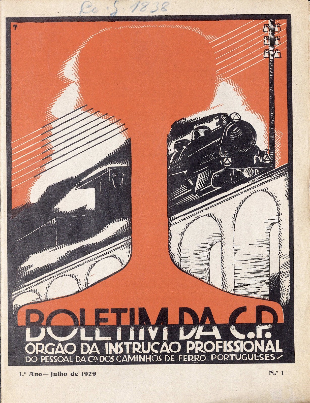 Boletim da CP, julho de 1929, com grafismo de Cottinelli Telmo].