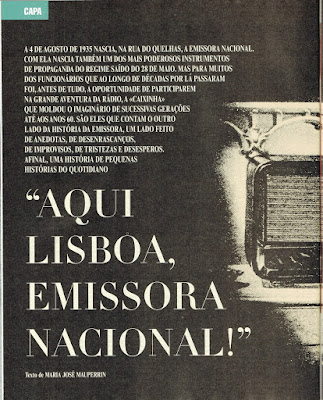 Do blogue Largo dos Correios (de António Martinó Coutinho) retiro o início de uma mensagem (e imagens) sobre a rádio pública: "A Emissora Nacional de Radiodifusão, a que chamávamos mais simplesmente Emissora Nacional, iniciou as suas experiências técnicas em Maio de 1934. Após esse período de adaptação, o serviço público foi oficialmente inaugurado no dia 4 de Agosto de 1935, cumprindo-se portanto hoje 80 precisos anos sobre a data. Então, o presidente da República do tempo, general António Óscar de Fragoso Carmona, visitou as instalações, cujo director era o capitão Henrique Galvão, um homem do regime que mais tarde se insubordinaria contra o Estado Novo".