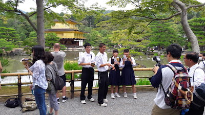 Kinkaku-ji (金閣寺, Templo do Pavilhão Dourado) é o nome dado ao templo Rokuon-ji (鹿苑寺), em Quioto, rodeado por um lago espelhado (Kyōko-chi). O pavilhão está coberto de folha de ouro puro. No telhado do pavilhão, existe uma fénix (fenghuang) dourada chinesa. O local foi usado, cerca de 1220, como local de descanso para Kintsune Saionji (西園寺公経, 1171-1244), nobre do período Kamakura e o primeiro a usar o nome Saionji. O pavilhão em si foi construído em 1397 para servir como sítio de descanso para o shogun Yoshimitsu Ashikaga [da Wikipedia].