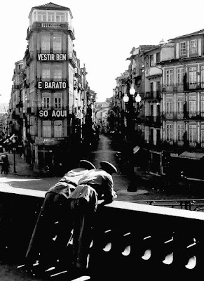 Das imagens já publicadas pelo filho, Daniel Pires, há duas séries retratando mulheres: na estação ferroviária de S. Bento e nas arcadas da Ribeira do Porto. Fico-me pela primeira série. Na fotografia inicial, duas mulheres ainda jovens conversam. Muito serena, a mulher à direita parece estar a confessar um pormenor mais íntimo da sua vida - talvez a pedir um conselho à outra mulher. Elas estão sentadas junto a um pilar da entrada da estação e o fotógrafo indica-nos um pormenor, a do sítio onde elas se sentam: cestos fortes de verga onde transportam certamente produtos domésticos ou alimentares. Mas o maior enquadramento vai para a imagem de azulejos da estação. Uma análise superficial pareceria indicar que a atividade das mulheres se ligaria ao rio ou ao mar, mas a estação ferroviária não é rota para qualquer das áreas, exceto numa zona longínqua, a de Viana do Castelo. Olhando melhor a imagem de azulejos, vejo dois motivos: transporte de pessoas, com um guarda-chuva a despontar, transporte de mercadorias de praia ou de encosta com uma parelha de bois a ajudar a transferência desses bens. O vestuário das mulheres pode configurar esta minha hipótese. À falta de melhor descrição chamo-as de minhotas: o lenço, o avental, as cores percecionadas da roupa.